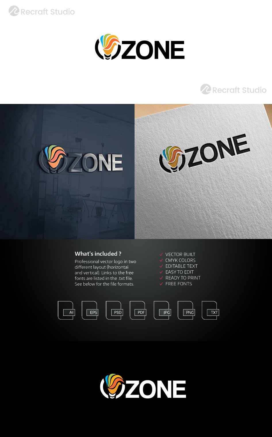 - Included zip contains AI, EPS, PSD, JPEG, PNG, PDF, FONTS